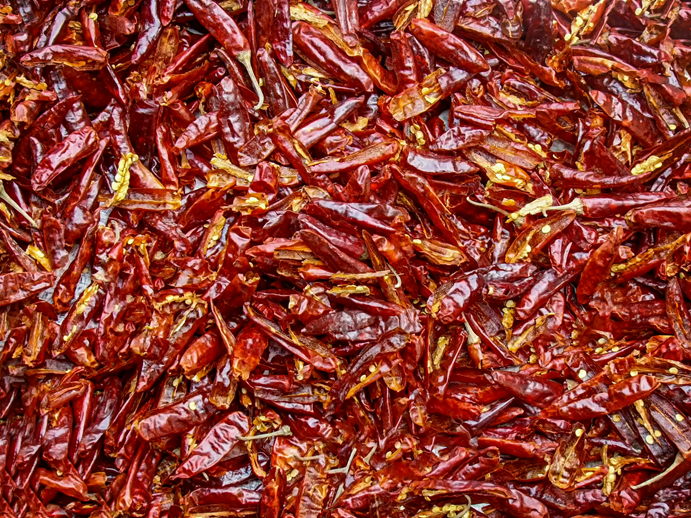 Sun-dried whole red chilies delivering vibrant color and bold heat.